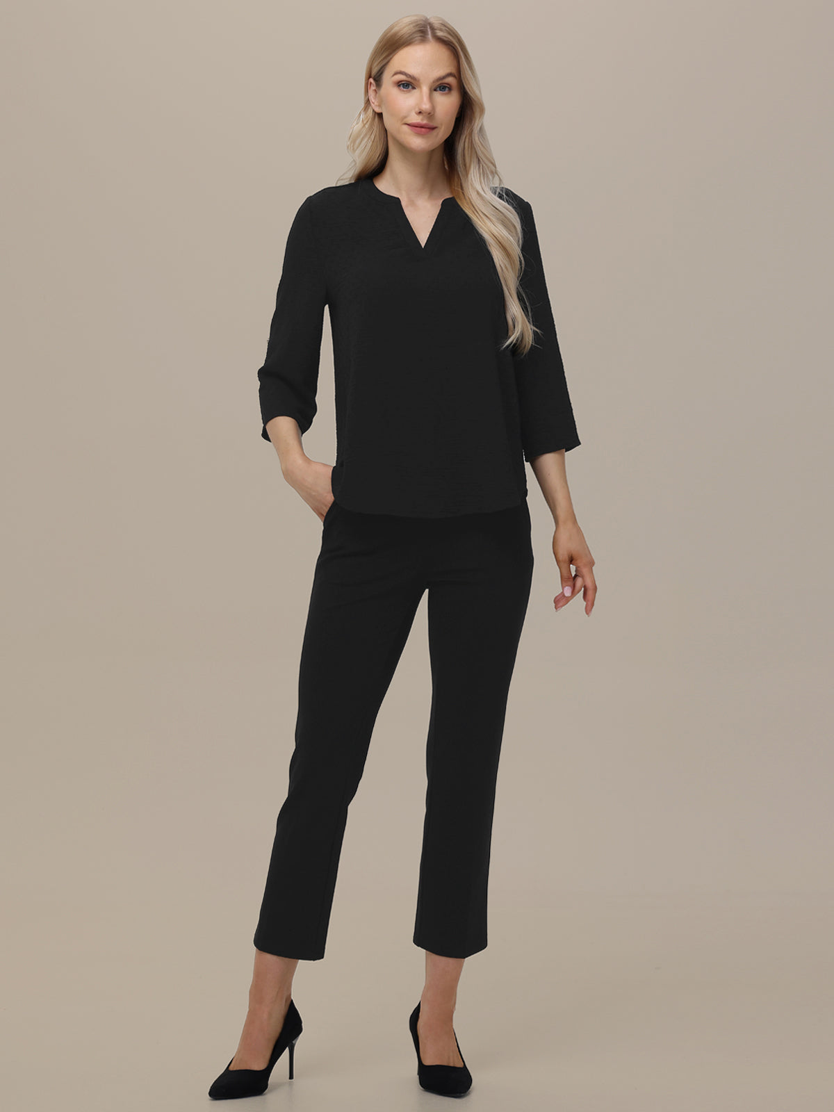 3/4 Sleeve Popover Blouse